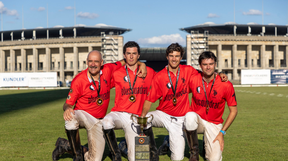 The finals weekend for the Engel & Völkers Berlin Maifeld Polo Cup took place at the iconic Maifeld Stadium, the same historic venue where the sport of polo was last played in the 1936 Olympic Games. Qualifying matches were held August 21-28 at the Prussian Polo and Country Club, leading to a thrilling finale that showcased the very best of the sport. In a dramatic final, Team Plusquadrat pulled away from Team Netjets with a score of 7 - 6.5. The tournament MVP was Bartolomé Bayugar from Team Plusquadrat, who was the top scorer in the final with three goals.